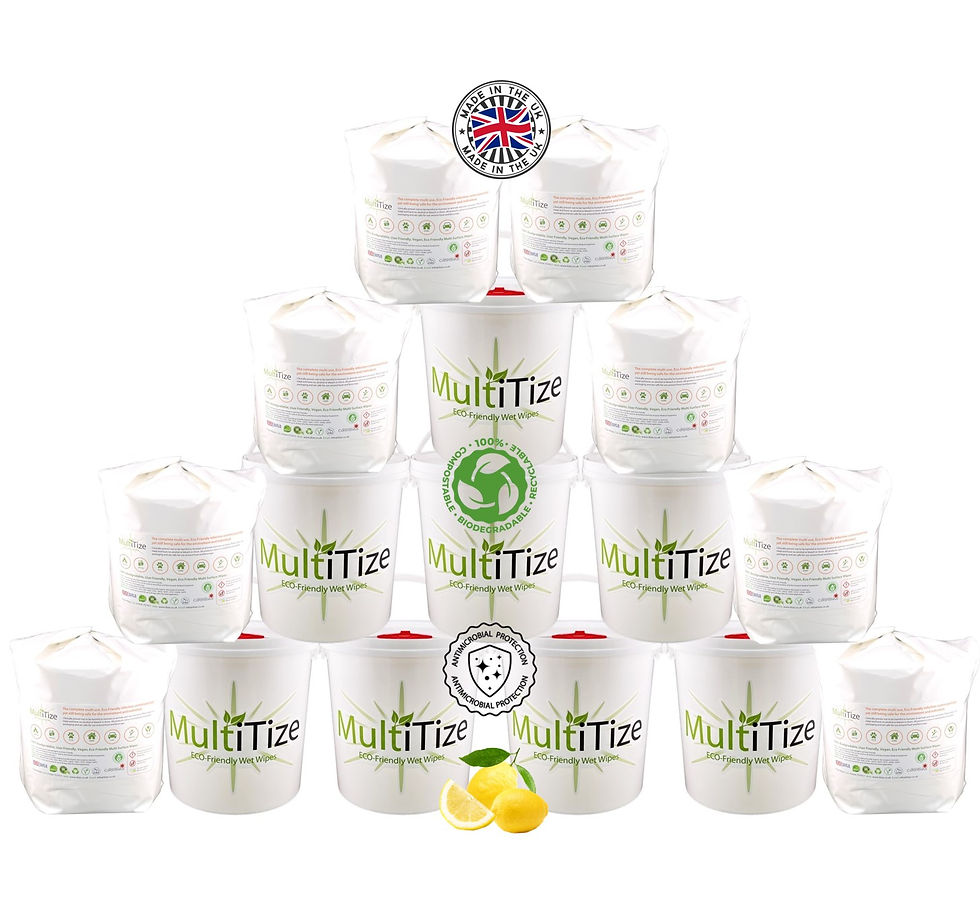 MultiTize Biodegradable All-Purpose Wipes. 8x Buckets + 8x Refills